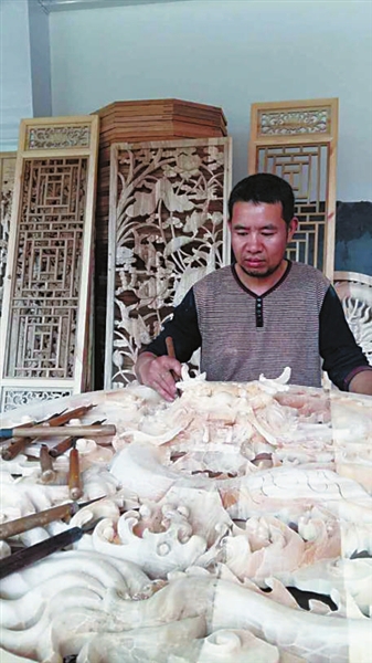 | 正在雕刻的陈云良。记者羊荣江 摄 |