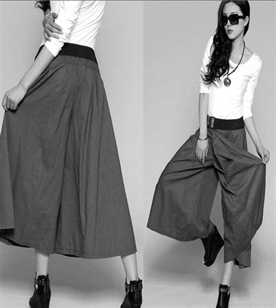 为使裤腿上绽放出人生的美丽,设计师们真可谓绞尽了脑汁。既然是裙裤,总是离不开飘逸、舒适、飞扬、轻舞之神态。那一天我与女友一道逛街,想去买一款合适的裙裤的时候,终于看清了裙裤的风姿月貌:在两腿的上方来一处深深的对折。这样一来,上小下大,方显出裙裤的种种风流。不!设计师们那出神入化的构思还在继续,他们喜欢在两只裤腿的地方,设计两朵大大的镂空花图案。一方面,充分地展露出女性的小腿的风情;另一方面,那若即若离的神韵总让人想起国外印象派莫奈和雷诺阿的绘画及斯克里亚宾的幻想曲来。