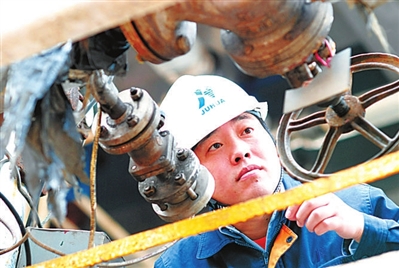 | 吴坚在检查机械设备。蔡正明 摄 |