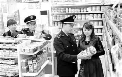 近日,龙游县市场监管局组成抽检工作组,对生产企业、小作坊及大型商家、超市等涉及几十个品种近千批次的食品进行抽检,确保人民群众的食品安全。图为该局抽检人员对县城一家商场奶制品进行监督抽检。