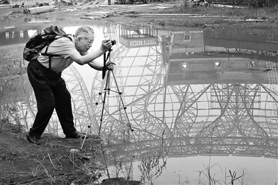 | 谭启晓在工地上拍摄。 陈慈林 摄 |
