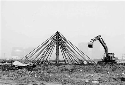 | 打下第一根试压桩基。 谭启晓 摄 |
