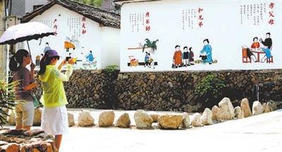 走近港口村,一排排崭新的民居错落有致,统一的灰墙与满眼苍翠形成鲜明的视觉反差,房前屋后荷花点缀,干净整洁,腰里挂着旱烟袋的老人悠闲地走向村口,身后紧紧跟着一条家犬。村内文化墙上的颜氏家训,既是对传统文化的宣传,也是对新时期的我们提出的要求。