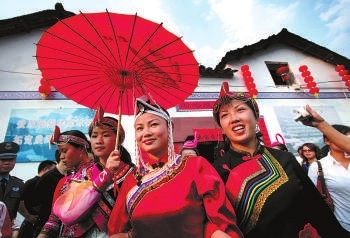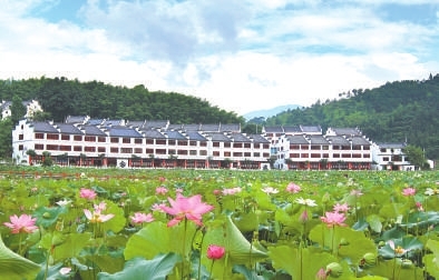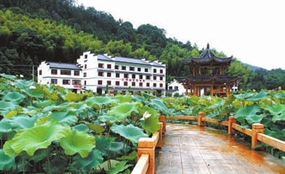 这里有门楼、古树、廊桥和戏台,连着大戏台的是满塘的荷花。利山村依山傍水,整个村子围着一大片白莲而成,村子中央的荷塘是利山村的一张金名片,“小青瓦、马头墙”,徽派风格的小洋房,墙体上绘着凤凰等畲族图案,这些整齐、漂亮的新房子就是畲村的新民居。走在村子里,一边是白墙灰瓦,马头翘角,一边是荷叶翩翩,畲族风情一览无余。