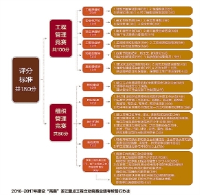 竞赛活动时间为2016年5月至2017年4月,分动员准备、组织实施、总结表彰3个阶段进行。同时下发了竞赛业绩考核暂行办法(见图表),明确由省竞赛办负责综合考核评估,最终考核结果,将成为推举立功“两美”先进模范专项名额分配的重要依据。