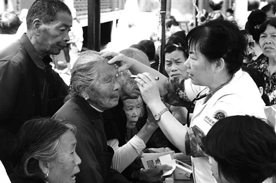 日前,台州市“2016年慈善开启光明”启动仪式在温岭市坞根镇坑潘村举行。当天,台州五官科医院的医护人员在坑潘村为坞根当地老年群众举行“慈善开启光明”义诊活动。