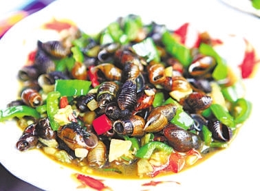 开化青蛳。开化青蛳又称清水螺蛳,是衢州市开化县传统的汉族名吃。因为其肉质鲜嫩可口、风味独特、营养丰富,在我国素有盘中明珠之美誉。
