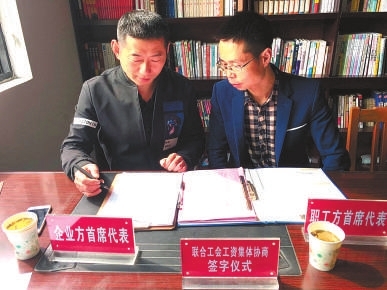 据介绍,该辖区有62家小微企业,从业人员300多人。2015年4月,在开发区总工会的指导下,社区3个联合工会召开区域性工资集体协商,劳资双方就岗位最低工资标准、工资分配形式、社会保险、休假、经济损失赔偿及女职工劳动保护等达成共识,并约定职工工资年度增长不低于8%。一年来,工资集体协商协议基本得到落实,维护了职工合法权益,助推了经济健康发展,实现“双赢”,成为全省首推样本。