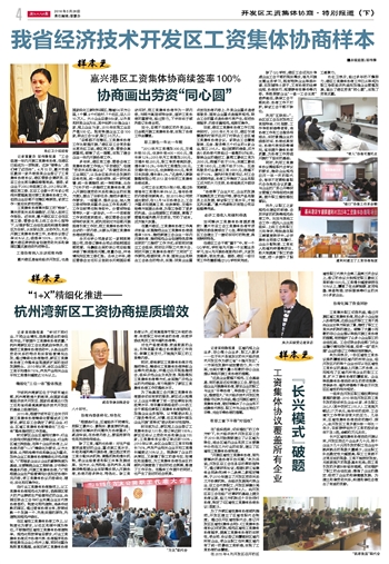 在区域性工资集体协商工作上,以制度化为要求,以社区和园中园为单位,不断推进区域性工资集体协商建制率。规范化即按照省总要求,行业工资集体协商双方协商代表、协商程序和协商结果在企业公布并上墙,同时注重台账积累和整理,全面反映工资集体协商八个环节。