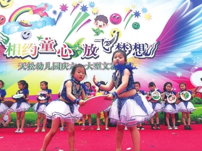 日前,临安市天松幼儿园举办“相约童心·放飞梦想”为主题的“六一”文艺汇演活动,孩子们用充满童趣的表演迎接“六一”儿童节的到来。胡剑欢 倪云玲 摄