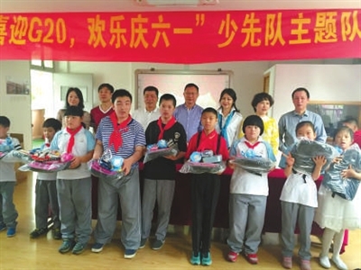 | 昨日,由杭州民建会员企业家联谊会西湖分会、杭州三豪实业有限公司、杭州百易得酒业有限公司联合发起的民建“思源工程”品牌爱心捐赠活动在杭州紫荆花小学举行,相关企业向学校捐赠了儿童文具等用品,祝孩子们节日快乐。何奇 摄 |