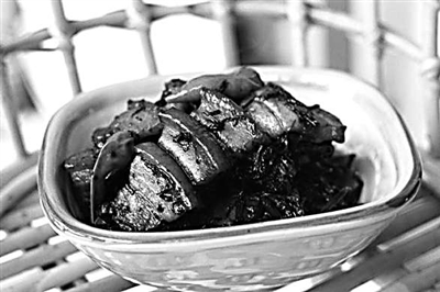 陈年的干菜又乌又香,与乌毡帽、乌篷船并称,是绍兴“三乌文化”的典型代表。当地的民谚云:“乌干菜,白米饭,神仙见了要下凡。”而与肉为伍的霉干菜,解腻、增鲜、入味。烧五花肉、仔排及蹄髈,皆脍炙人口。
