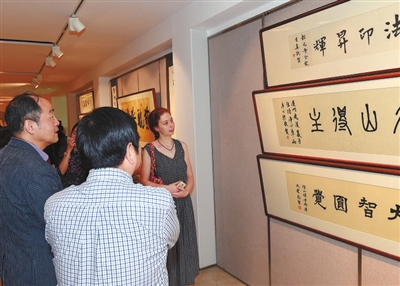 近日,由杭州西泠印社执行社长刘江点题“墨之缘”的“墨之缘——迎G20暨杭州北高峰书画院成立五周年书画展”,在杭州五洲文化中心启幕。画展云集了中国佛教协会名誉会长一诚法师,杭州北高峰书画院执行院长、杭州灵顺寺住持释印旭法师,浙江书画界名流何水法、吴山明、杨西湖等各界名人的书画精品,契合峰会“创新、活力、联动、包容”的主题,表达万众一心喜迎峰会的美好心愿,让世界感受中国传统文化艺术的魅力。本次画展将持续至6月3日。记者周金友 通讯员徐卫红 摄影报道