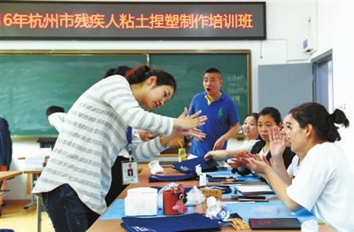 昨天上午,杭州市残疾人康复培训中心联合杭州乐漫土创想俱乐部,为残疾人举办粘土捏塑培训班。培训的课程有粘土捏塑蔬果、卡通动物造型,还有磁铁、胸针、钥匙扣等日常配件的制作,旨在让残疾人学习掌握一门自我生存的手艺和技能,自食其力,自强自立。 记者周金友 摄影报道