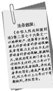 本报讯 见习记者胡翀 通讯员西法报道 带着24名工人近半年的工资,总计32万余元一走了之,日前,被告人王某被杭州西湖区人民法院以拒不支付劳动报酬罪,判处有期徒刑6个月,并处罚金人民币3000元。