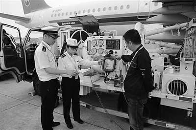 | 图为海关关员在机坪监管保税航油加油车。 陈臻晗 摄 |