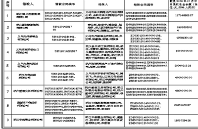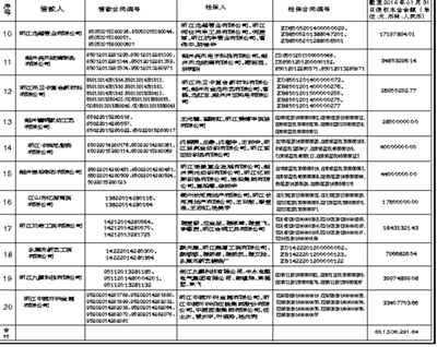 | 中国华融资产管理股份有限公司联系人:朱女士 联系电话:010-57809364 地址:北京市西城区百万庄大街甲2号院 上海浦东发展银行股份有限公司杭州分行联系人:沈女士 联系电话:0571-87366483 地址:杭州市延安路129号 注:1. 本公告清单列示暂计至2016年01月31日的贷款本金余额,借款人和担保人应支付给中国华融资产管理股份有限公司的利息按借款合同、担保合同及中国人民银行的有关规定计算。 2. 若债务人、担保人因各种原因更名、改制、歇业、吊销营业执照或丧失民事主体资格的,请相关承债主体及/或清算主体代为履行义务或履行清算责任。 3. 清单中“担保人”包括保证人、抵押人、出质人,担保人的担保范围以签署的合同等法律文件约定为准。如公告中债务人、合同编号、债权金额、担保人等信息与事实不符的,以签署的合同等法律文件约定为准。 附:转让清单 |