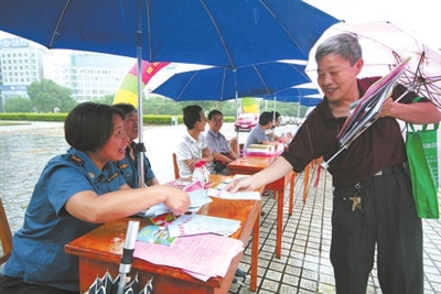 今年6月份,永康市交通运输局“全国安全生产月”活动精彩纷呈。近日,该局专门组织路政、运管、交通安监等部门的工作人员在市五金广场“摆摊设点”,向市民进行相关政策、法规、法律的宣传,并且对前来咨询的市民耐心细致地进行解答,使道路运输、公路及路政管理等法规进一步深入人心,增强人民群众的安全意识。林加强 朱伟华