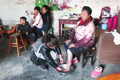 在婆婆住院治疗2个月期间,余绿梅带着两个孩子三天两头到医院看婆婆,每次在病房,都帮婆婆翻身按摩、擦身洗澡、端盘排泄大小便等,直到婆婆出院。