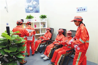 来自四川农村的江干区凯旋环卫所职工冯正武和一群工友们走进宽敞清凉的驿站,好一阵激动。冯正武说,环卫工作性质决定我们每天都在路上,夏天太阳晒,冬天寒风吹,没有固定的休息场所。现在终于有一个属于我们环卫工人的“家”了。从今天起,累了、渴了、热个饭菜啥的,都可以进自家的驿站了。