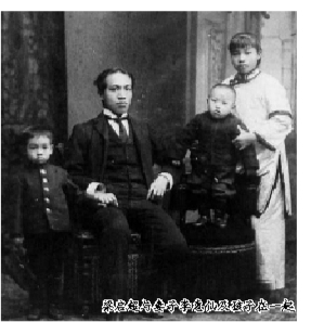 | 梁启超与妻子李惠仙及孩子在一起 |