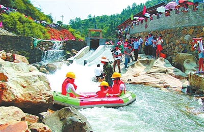 因地处新昌乡著名山峰“八面山”山脚下而得名,漂流全程2.1公里,流经黄塘村、岩前村,行程近1小时。坐上橡皮艇,一路乘风破浪,尽情体验“中流击水,浪遏飞舟”的感觉。这里河水湍急时有急流险滩,时有平缓水面,让你尽享刺激与惊险,浪漫与温馨。沿途风光秀丽,时而野花幽香,时而鸟啼翠林,时而峭壁陡立,给您一种视觉享受,让您在漂流中释放压力回归自然。