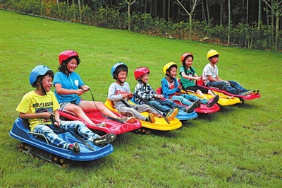 滑草场总占地4800多平方米,草地坡度成30°角,为衢州市首个滑草场,滑草场配有休息区、便利店、停车场等服务设施。场内特设“滑草靴”和“滑草车”两种滑草装备, 滑草靴需搭配滑草杖,类似滑雪,向下撑滑;滑草车,类似雪橇,从草坡由上而下滑。滑草时,时而缓缓向下,怡然自得,时而风驰电掣,惊险刺激,别有一番风味。