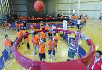 昨天上午,杭州市纪念第十次全国特奥日活动在杭州市残疾人托管中心举行。来自杭州各城区及相关工疗机构、托管中心的特奥运动员们,兴致勃勃地参加了定点投篮、跳绳、套圈、快乐投球等特奥运动项目,向前来观赛的家长、工作人员和志愿者,展现智障人士的运动潜能和昂扬斗志,你行,我也行!