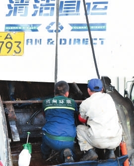 在填埋场一旁的汽车修理场,环境集团装备修理分公司工段长金源告诉记者,现在所有的清运车都开足了马力,故障也比平日多,这个高温点上一辆车都不敢停下来。许多汽车修理工都是二话不说,一头扎进恶臭难闻的垃圾清运车的“肚子”里,抢修设备故障。最早凌晨3点,就有清运车进来修理,一直要忙到晚上最后一辆车修好为止,坚决保证城区垃圾能及时清运。