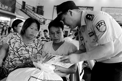 随着G20离我们越来越近,全省各客运站等人员密集场所均加强了安保工作。日前,台州市路桥公安分局组织民警到村居、社区、车站、菜场等场所开展防偷盗、防火灾、防溺水等安全防范知识普及,以便提高广大市民的法律防范意识,为维护广大市民的夏季出行安全出一份力。图为民警正在台州市客运南站向旅客宣传安全常识。