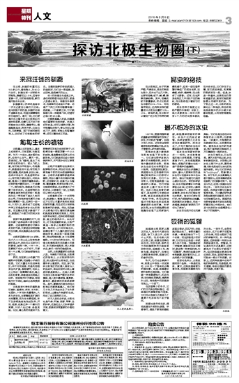 在北极地区,由于环境严酷,气候恶劣,昆虫的种类比较少,总共也不过几千种,主要有苍蝇、蚊子、螨、蠓、蜘蛛和蜈蚣等。其中,苍蝇和蚊子数量最多,约占北极昆虫总数的60%~70%。而在温带地区,这两种东西的数量却只占昆虫总量的10%~20%。奇怪的是,在北极可以看到广泛分布于热带的蝴蝶和蛾子,但有一些在温带繁衍得很广的昆虫世界,如蜻蜒、蚂蚱、蟋蟀等,在北极却了无踪影。还有,在世界其他地区几乎无处不在的蚂蚁,在北极却很少看到它们的踪迹。