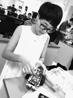 2015年底,她的“星空创客空间”工作坊开办。“星空创客空间”是一座以青少年为主的创意体验馆,里面摆放着很多前沿物品,除了电脑、拼装机器人,更有3D画笔、3D打印机、各种电路板、热转印机等等。在这里,孩子们可以自己创作产品。比如用特殊的3D画笔画出一辆小汽车的车身,然后再用3D打印机打印出合适的汽车轮子,就成了他亲手制作的玩具。