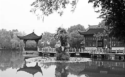 | 小瀛洲上的先贤祠、九曲桥、九狮石 |