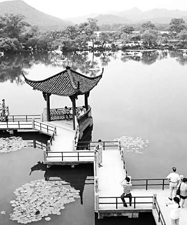 ——西湖十二桥钓叟题三潭印月静凉轩。”
