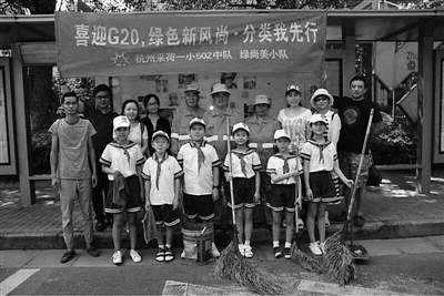 8月20日一早,来自杭州采荷一小502班的“绿尚美假日小队”走上街头,体验了环卫工人工作的辛劳,并递上了矿泉水和毛巾等慰问品,为“城市美容师”送上了一丝清凉。在这个夏天,“绿尚美假日小队”通过一天意义非凡的活动,不但丰富了学生们的社会体验,更把“绿色新风尚”的绿色环保理念散播给了每一位身边人。