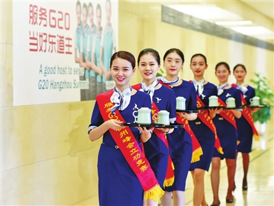 | 杭州机场贵宾室开展“我为G20献微笑”真情服务活动。 |
