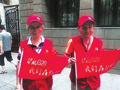 原来,洪阿姨和傅师傅都是杭州市上城区湖滨街道吴山社区的居民,两人从5月份开始就陆续开始了志愿服务活动。“先是协助管理交通,劝导行人,后来在休息日进行街面巡防,随着G20峰会日子的临近,我们志愿服务的时间也从原先的休息日调整到现在每个时段路上都有人。”目前被返聘在华越建筑设计院工作的傅师傅告诉记者。