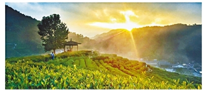 | 遍地美景的杭州,让摄制组彻底爱上了这座城。图为导演拍摄的杭州茶山日出。 |