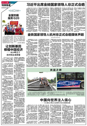 领导人祝贺并支持中国担任2016年二十国集团主席国,对杭州峰会取得丰硕成果充满信心,赞赏中国作为主席国对发展议程的重视,鼓励二十国集团成员加强宏观经济政策协调,推动创新,促进强劲和可持续的贸易投资增长。