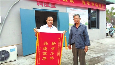 9月13日下午,河南柘城的杨老汉来到永康远通公交公司农贸城公交首末站,将一面印有“拾金不昧 品德高尚”的锦旗交到公司车队负责人手中,对9路线浙GG9312车驾驶员石祥拾金不昧表示衷心感谢。