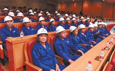 | 在G20杭州峰会场馆建设中作出重大贡献的建筑工人应邀出席大会,共享胜利的喜悦。记者周金友 摄 |