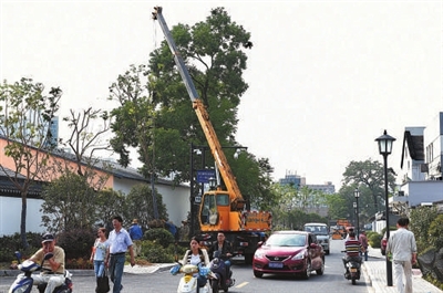 昨天上午,在乘着G20杭州峰会的东风华丽转身的杭州馒头山社区里,园林工人正在用大吊车补种树木(上图)。一位工人乐呵呵地说,峰会虽然闭幕了,但我们绿化的步子一天都没停下来过,我们要把这里绿化成一个美丽的“大公园”。据悉,馒头山曾贵为皇城,走在“山路”上,不经意间就能看到“全国重点文物保护单位”的石碑。但这里也曾是“被遗忘的角落”和“西湖边上没有比这更脏乱差的地方”。如今,整治一新的馒头山社区,白墙黑瓦,庭院深深,既有古色古香的民宅,又有文艺味十足的“公社”(下图),让人仿佛置身美丽的“世外小镇”,流连忘返。