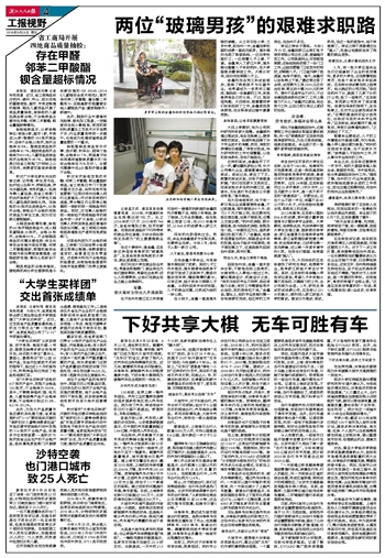 在这个群体中,像金鑫、应忠彬这样很容易骨折的“玻璃男孩”,及其他有身体残疾的大学生,就业更是难上加难。