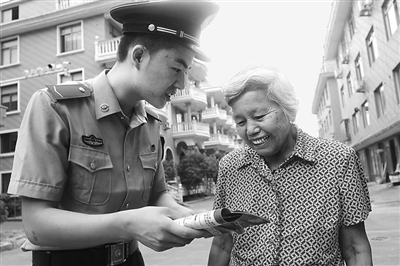图为消防官兵在向村民讲解家庭消防安全知识。