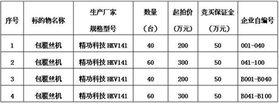 本公司受委托,定于2016年10月11日下午3时在浙江省金华市四联路260号江南会商务酒店6楼公开拍卖HKV141型包覆丝机(2012~2013年出厂),公告如下: