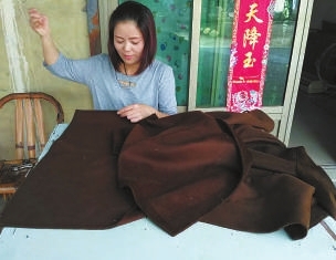 近年来,双面羊绒大衣走红,徐庆珍和村里几个农妇,从上虞国际裘皮城揽回来一些羊绒大衣缝制业务。