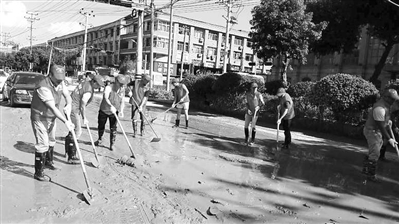 “清扫的任务依然很重,有些垃圾堆起来有50厘米高,全靠职工的双手去清理,都是体力活,不仅累,而且很脏。但是大家都是自发自愿前来的,积极性很高。”水头镇总工会主席林延瑞告诉记者,随着水头镇辖区有关受灾企业陆续完成各自厂区的清理清扫,经镇工会组织动员,温州乐博皮件有限公司等多家企业腾出人手,组织职工志愿者服务队20多支,300多名职工相继走上街头清理垃圾。