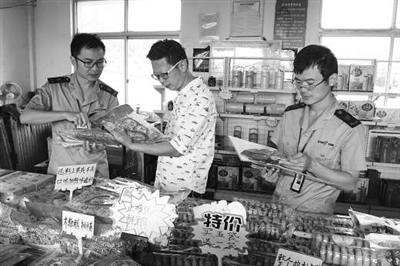 近日,龙游县市场监管局重点开展对景区及周边的超市、小食品店和农家乐的食品安全执法检查,依法查处各类食品安全违法违规行为。图为小南海市场监管所执法人员在石窟景区检查食品超市。江友富 王益明 摄影报道