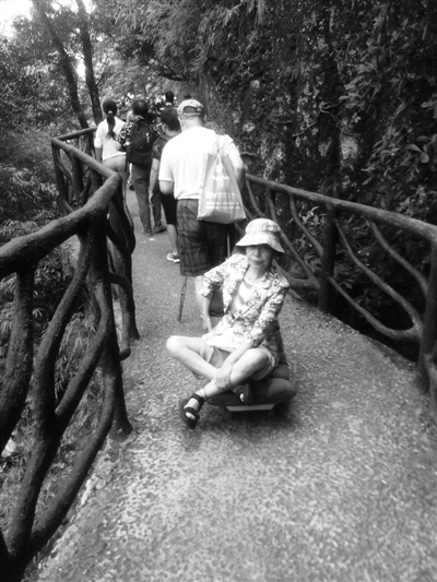日前,笔者在江西三清山旅游景区里看到,一位男子用小型平板车拖着老伴行走在栈道上,多么温馨的一幕!徐曙光 摄影报道