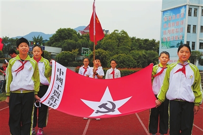 10月12日,浦江县治平中心小学举行了庄严隆重的红军长征胜利80周年纪念大会暨少先队新队员入队仪式。伴随着雄壮的出旗曲,少先队礼仪部的同学迈着整齐的步伐,精神抖擞地进行着庄严的出旗仪式。本次入队仪式还专门打出一面中国工农红军军旗,向红军长征胜利80周年致敬。